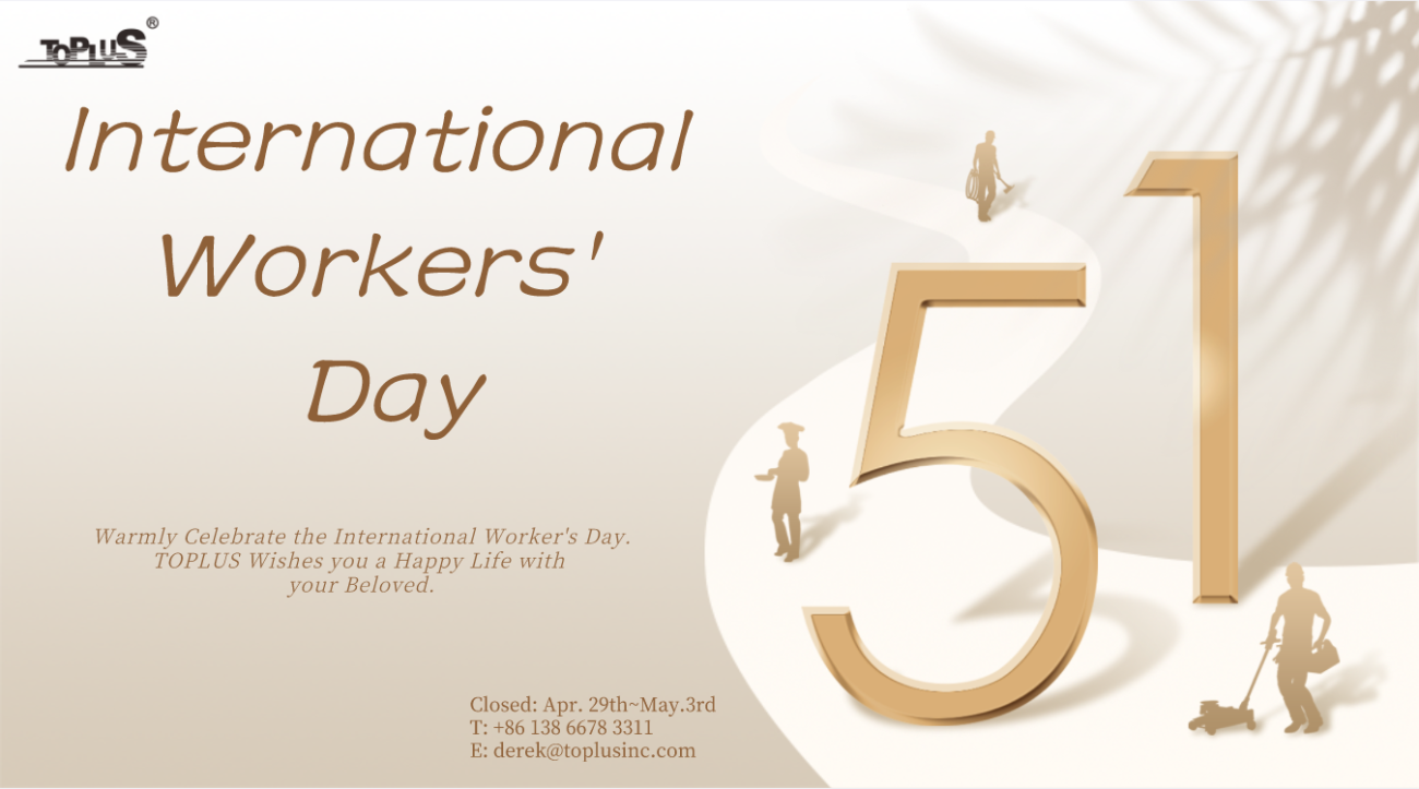 29 أبريل أخبار Toplus Toplus 2024 International Labor Day Arrangement February 21, 2025 بواسطة توبلس 0 تعليقات Date: April 29th, 2024Dear Sir/Madam,As the Chinese 2024 International Labor Day is approaching soon, Toplus will be closed fro...أكمل القراءة
