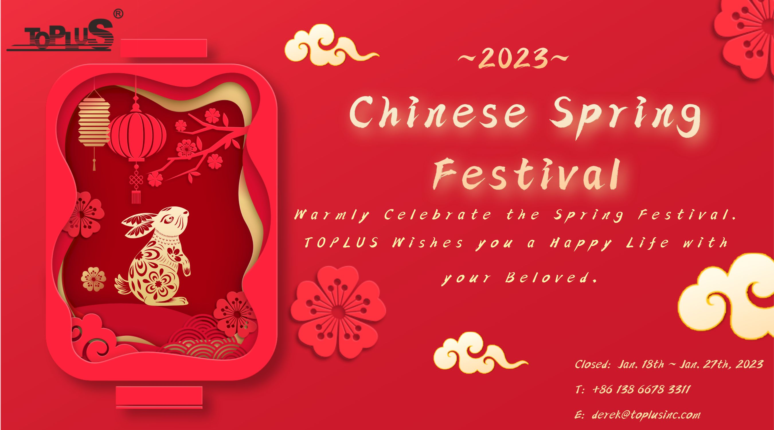 ومع اقتراب عيد الربيع الصيني 2023 قريبًا، سيتم إغلاق توبلوس في الفترة من 21 يناير إلى 27 يناير 2023.
